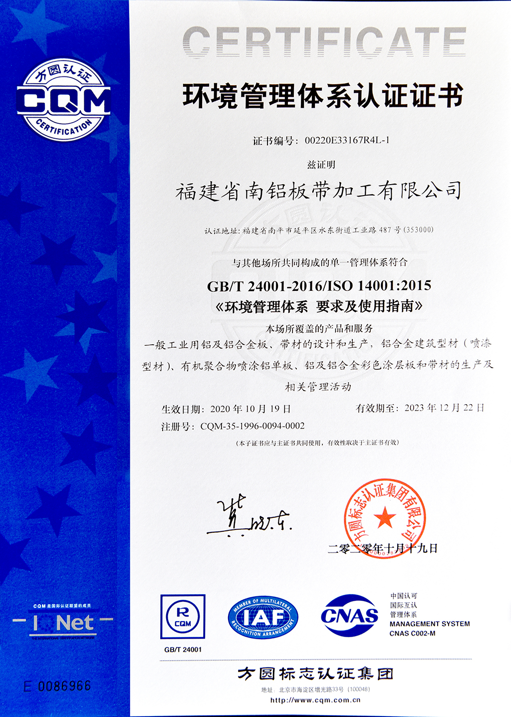 上一條:職業(yè)健康安全管理體系認證證書--南鋁板帶