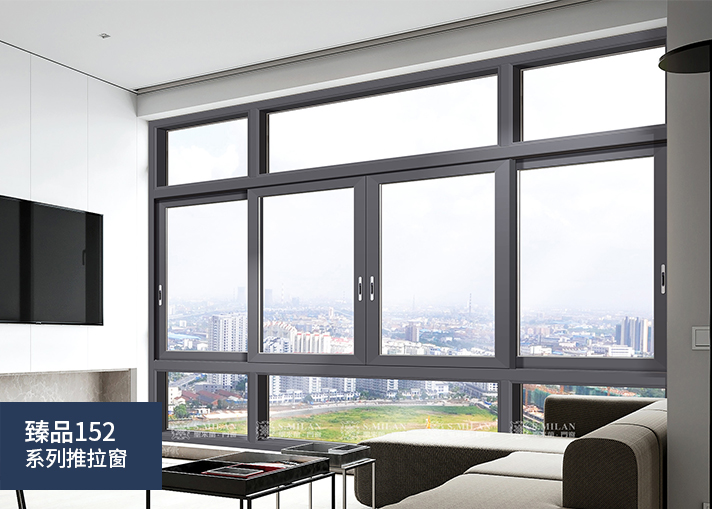 臻品152系列推拉窗  超窄邊框 三軌 中隱紗扇設計